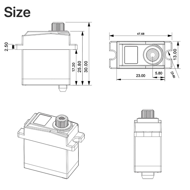 Stall Torque: 4.8V/ 4.8 kg.cm; 6.0V/ 6.0 kg.cm; 8.4V/ 7.0 kg.cm